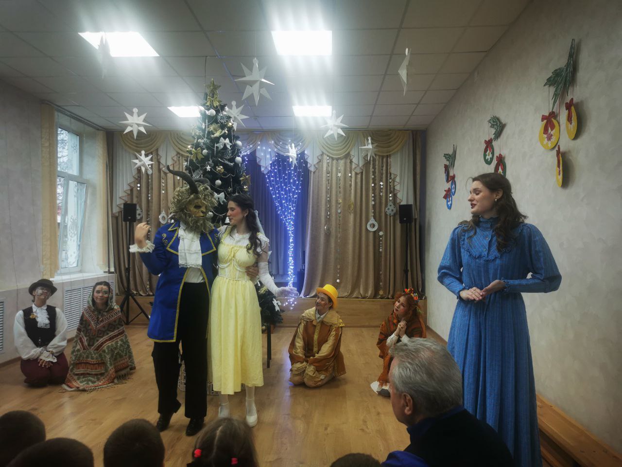 Студенты лингвистического университета г. Минска помогли нашим учащимся почувствовать тонкую грань понятий добра и зла с помощью сказки "Красавица и чудовище". Дети сопереживали героям и были рады счастливому финалу пьесы.